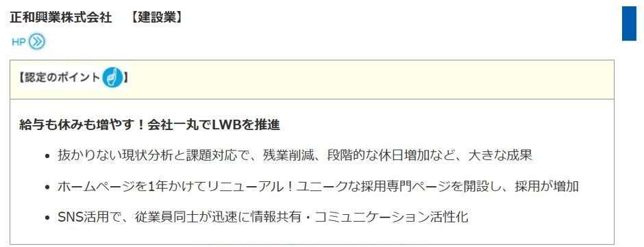 正和興業株式会社は、東京都が実施する「東京ライフ・ワーク・バランス認証制度」において、認証企業として認定されました!